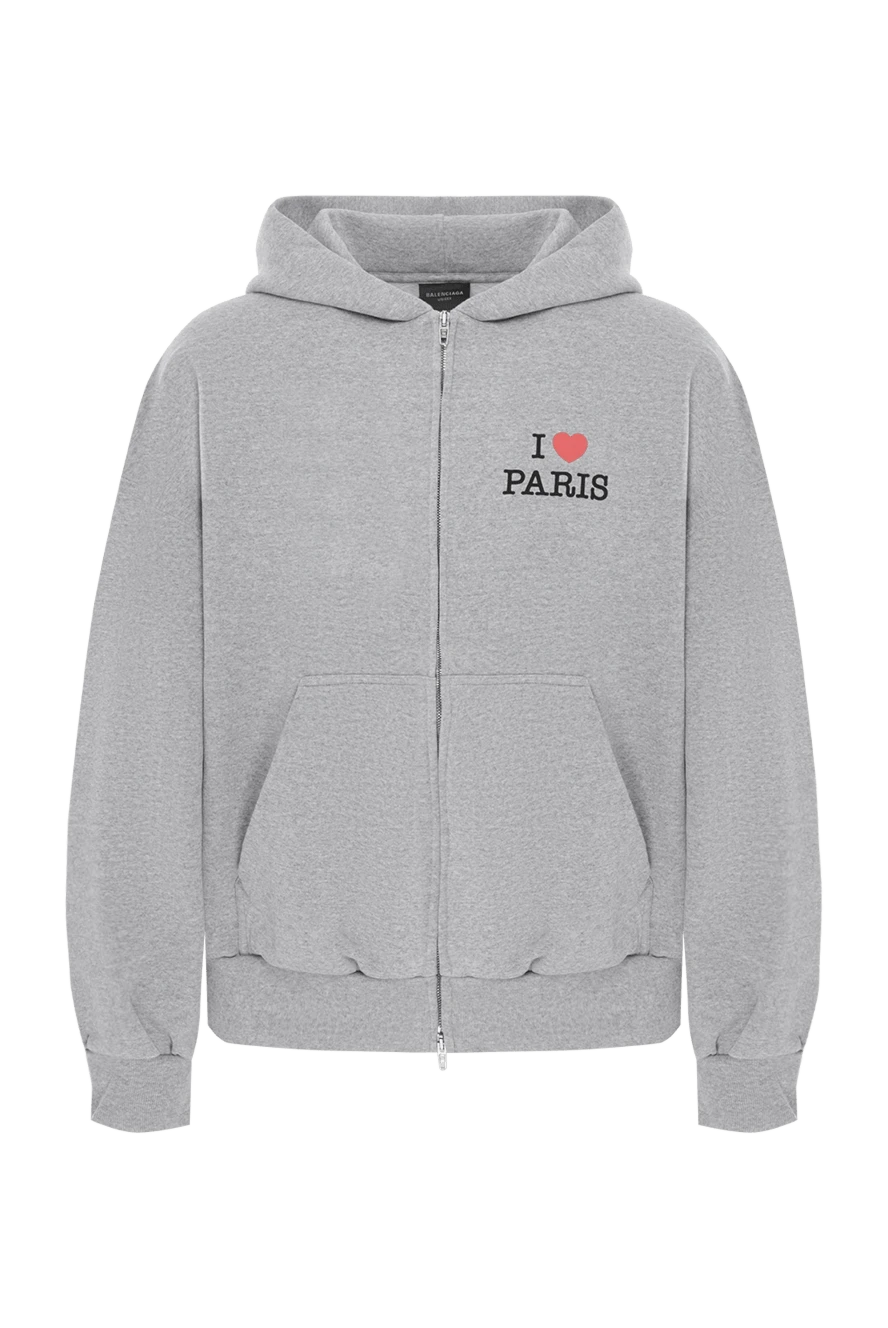 Худі сіре на блискавці з принтом I Love Paris з бавовни
