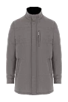 Сірий чоловічий пуховик із вовни та кашеміру з коміром стійкою