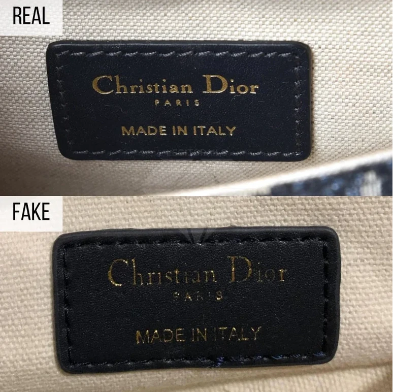 В оригинальных изделиях Dior ярлык с названием бренда выполнен из высококачественного атласного или жаккардового плетения, где логотип выткан, а края ярлыка идеально аккуратно вшиты.