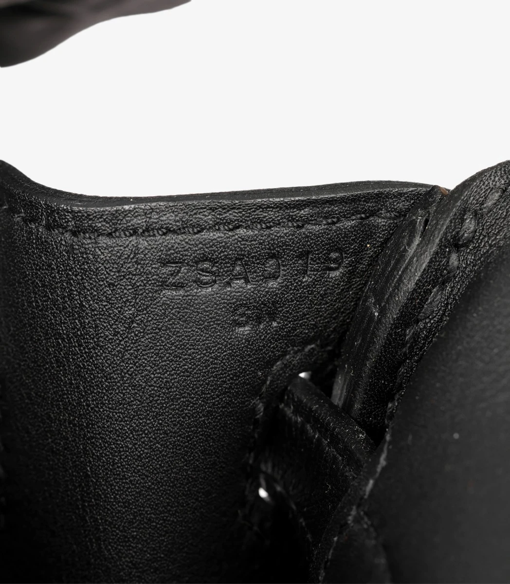 Штамп содержит букву в геометрической фигуре: круг, квадрат или без обрамления, которая указывает на год выпуска, а также набор цифр и символов, идентифицирующих конкретного ремесленника.Если раньше штамп всегда находился на обратной стороне застежки , то в последние годы Hermes начал прятать его внутри сумки – в углу левой или правой панели.