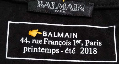 Особенно обратите внимание на бирки и внутренние ярлыки: часто реплика Balmain выдает себя там, где человек не предполагает – на бирке состава, шве или на посадке.