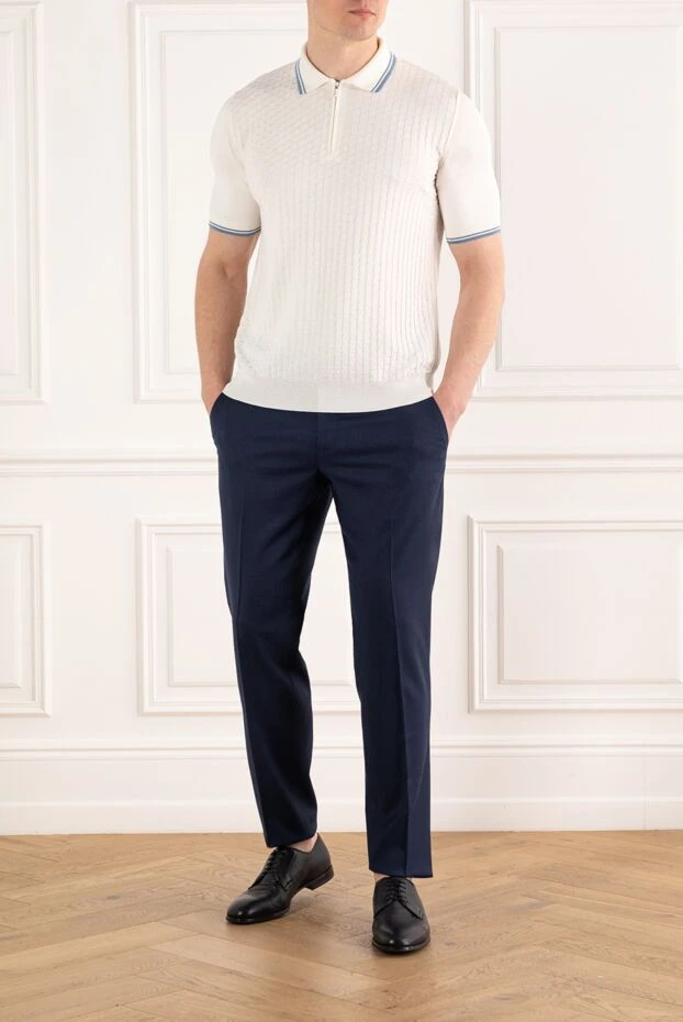 Фактурна тканина насиченого синього кольору надає образу свіжість і впевненість. Однобортна модель від Sartoria Lattorre підкреслює силует за рахунок чіткої лінії плечей і приталеного крою. Ідеальний для ділового гардеробу та міських виходів.